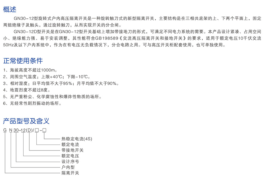GN30-12 series indoor rotary high-voltage isolation switch