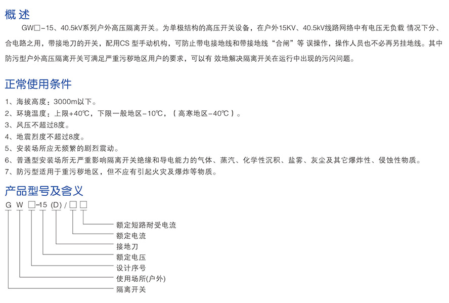GW-15 series outdoor high-voltage isolation switch