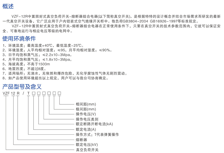 VZF-12R Mid mounted Sealed Vacuum Load Switch Fuse Combination Electrical Appliance