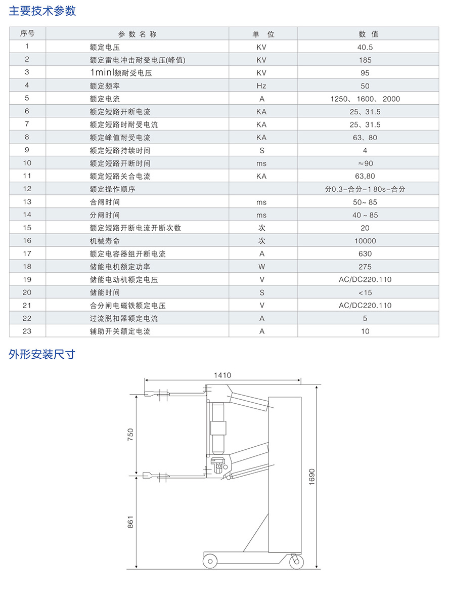 ZN23-40.5/2000-31.5 indoor handcart vacuum circuit breaker