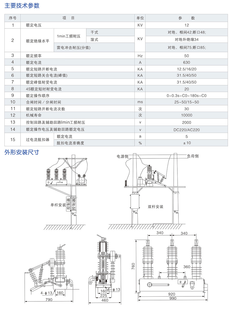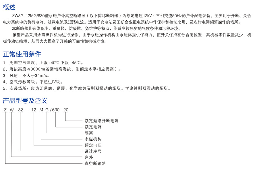 ZW32-12MG/630 series permanent magnet outdoor vacuum circuit breaker