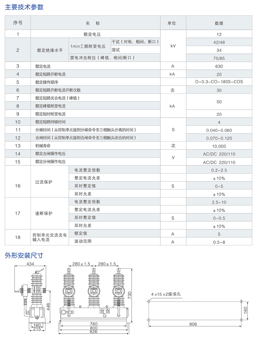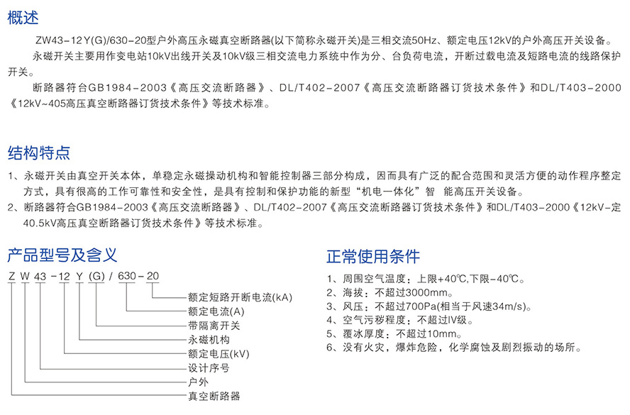 ZW43-12Y (G)/630-20 Outdoor High Voltage Permanent Magnet Vacuum Circuit Breaker