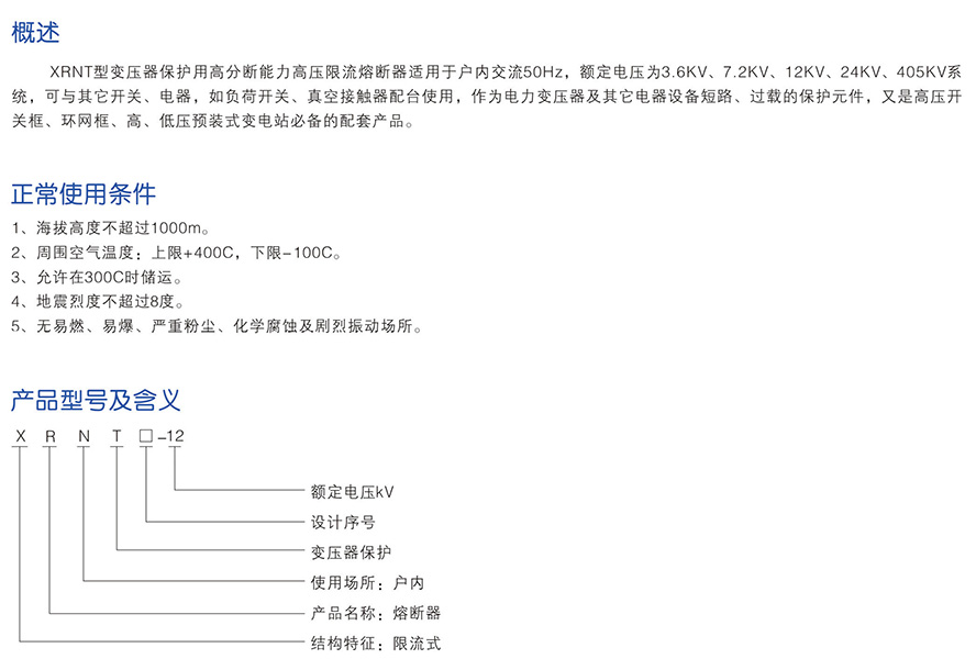 XRNT type transformer protection high breaking capacity high voltage current limiting fuse
